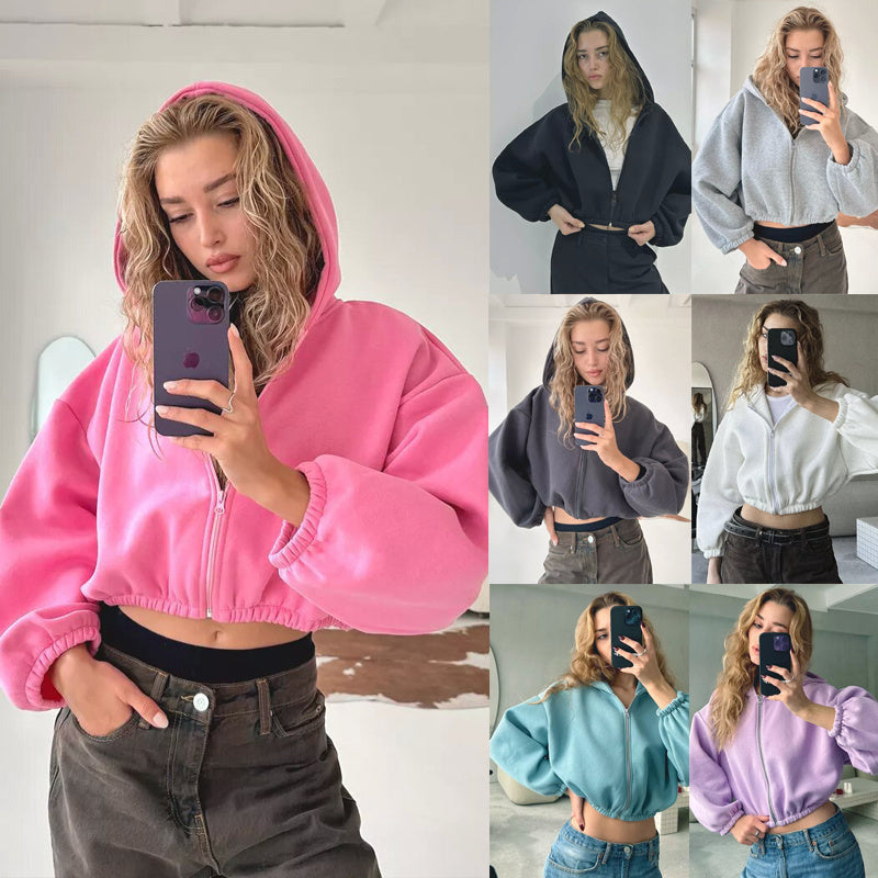 European And American Fashion Hoodie Short Jacket With Zipper