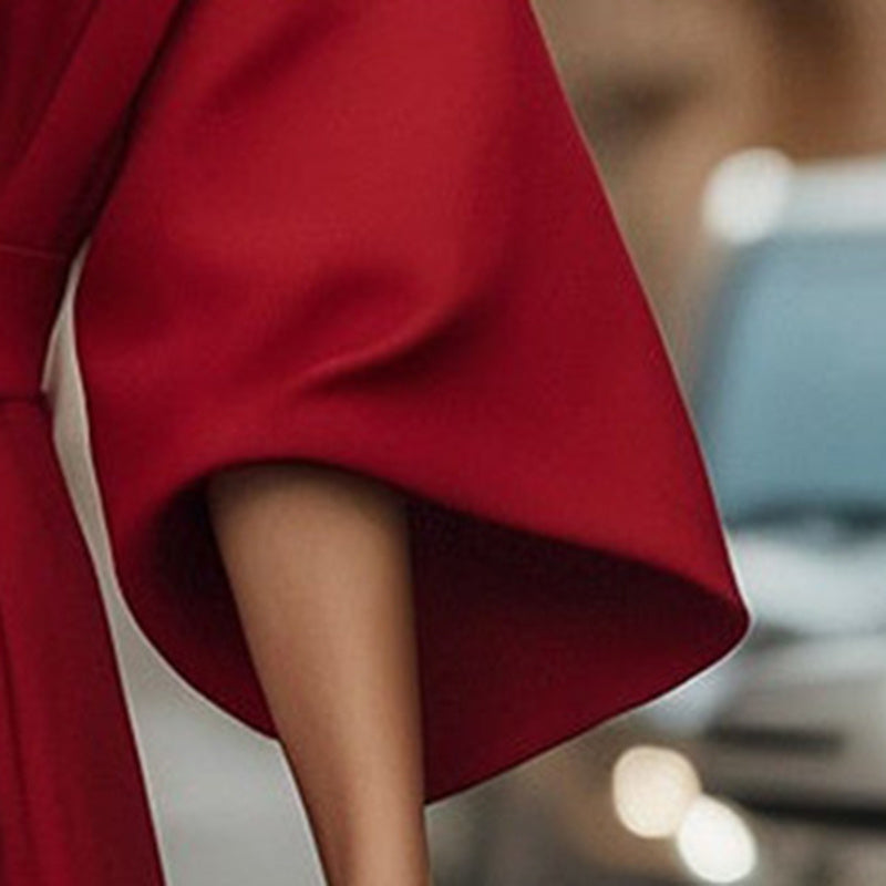 Designed specifically to flatter curvy figures, this stunning dress features strategic pleating at the waist that creates a beautiful hourglass silhouette while offering comfortable movement. The versatile mid-sleeve length and graceful maxi cut make it perfect for everything from professional settings to special occasions.